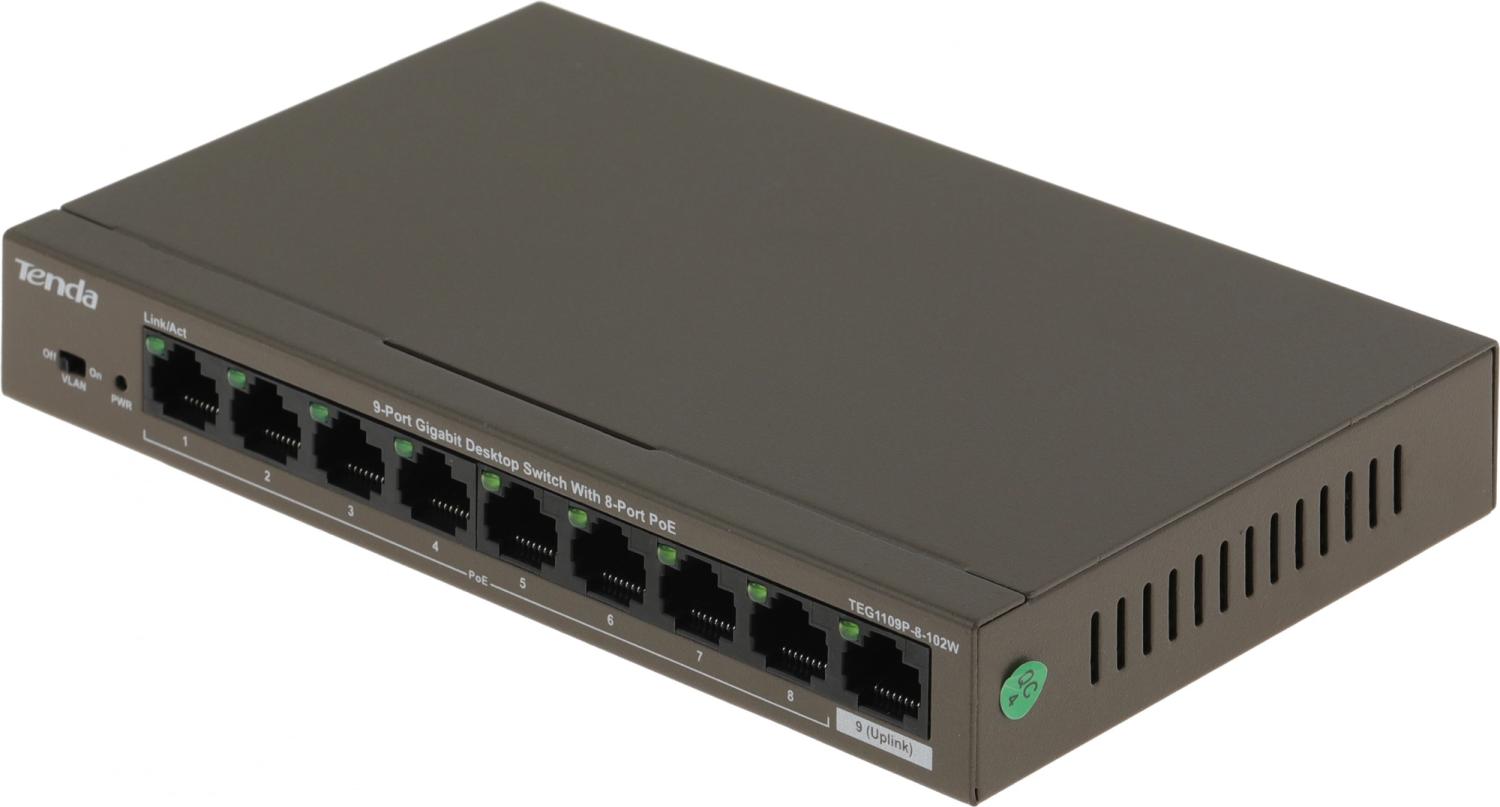 Коммутатор Tenda TEG1109P-8-102W (L2) 9x1Гбит / с 8PoE 92W неуправляемый
