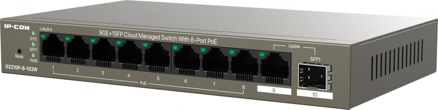 Коммутатор IP-Com G2210P-8-102W (L2) 9x1Гбит / с 1xКомбо(1000BASE-T / SFP) 1SFP 8PoE 92W неуправляемый
