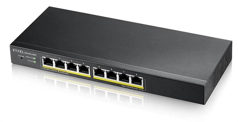 Коммутатор Smart L2 PoE+ Zyxel NebulaFlex GS1915-8EP, 8xGE PoE+, бесшумный (без вентилятора), бюджет PoE 60 Вт