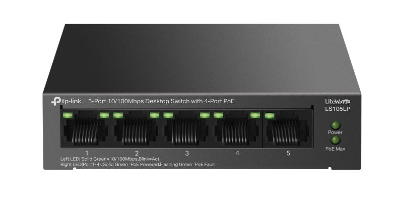 коммутатор TP-Link LS105LP, 5-Port 10 / 100 Mbps Desktop Switch with 4-Port PoE, 41W, 250m