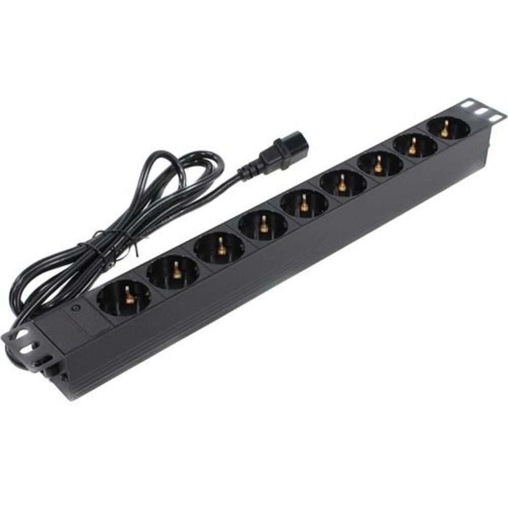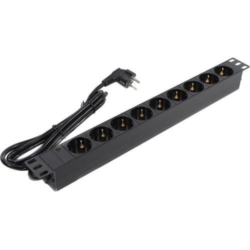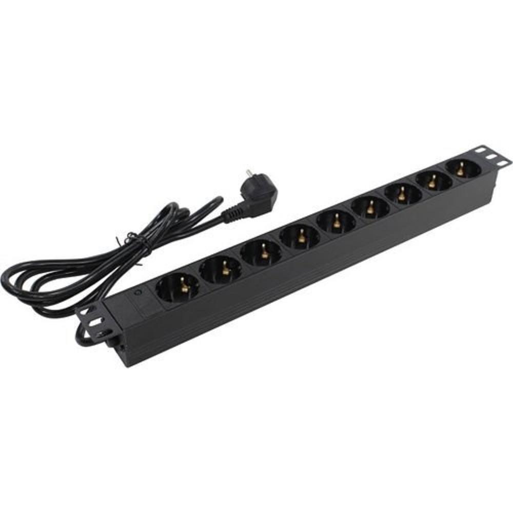 Exegate EX280851RUS Блок розеток ExeGate ServerPro PDU-19H905 Al-9S-EU3, 19",1U,алюм, 9Schuko, евровилка, 3м