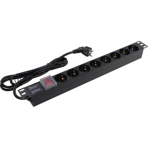 Exegate EX280842RUS Блок розеток ExeGate ServerPro PDU-19H803 Al-8S-EU2-SW, 19",1U,алюм, 8Schuko, евровилка, 2м