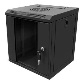 NTSS Шкаф настенный телекоммуникационный NTSS LIME 12U 550х450х635мм, 2 профиля 19, дверь стеклянная, боковые стенки несъемные, разобранный, черный RAL 9005 NTSS-WL12U5545GS-BL