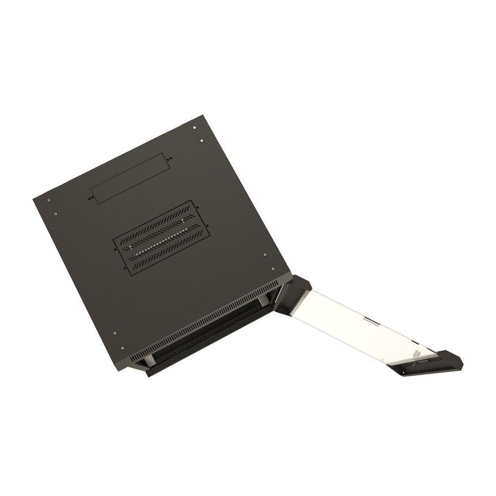 Шкаф HyperlineTWB-0966-GP-RAL9004 настенный 9U 500x600х600мм, стеклянная дверь с перфорацией по бокам, ручка с замком, цвет черный (RAL 9004) (разобранный) (075031)