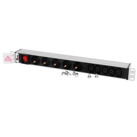 REM Блок розеток Rem-10 с выкл., 4 Schuko, 6 IEC 60320 C13, 10 A, алюм., 19", шнур 1,8 м. IEC 60320 C14 (R-10-4S-6C13-V-440-1.8)