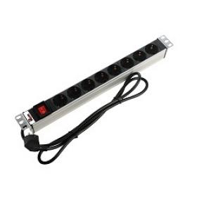 REM Блок розеток Rem-16 с выкл., 8 Schuko, 16A, алюм., 19", шнур 1,8 м. ( R-16-8S-V-440-1.8)