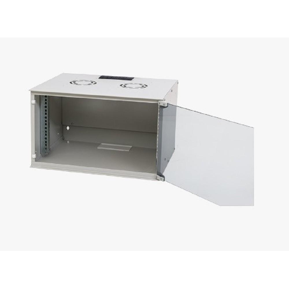 Rexant (04-2210) Шкаф настенный 19" 6U 600х450х370мм (ШхГхВ) - передняя дверь металл, боковые стенки съемные (разобранный), RAL 7035 PRO