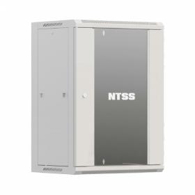 NTSS Шкаф настенный телекоммуникационный NTSS W 15U 600х600х770мм, 2 профиля 19, дверь стеклянная, боковые стенки съемные, задняя стенка, разобранный, серый RAL 7035 NTSS-W15U6060GS
