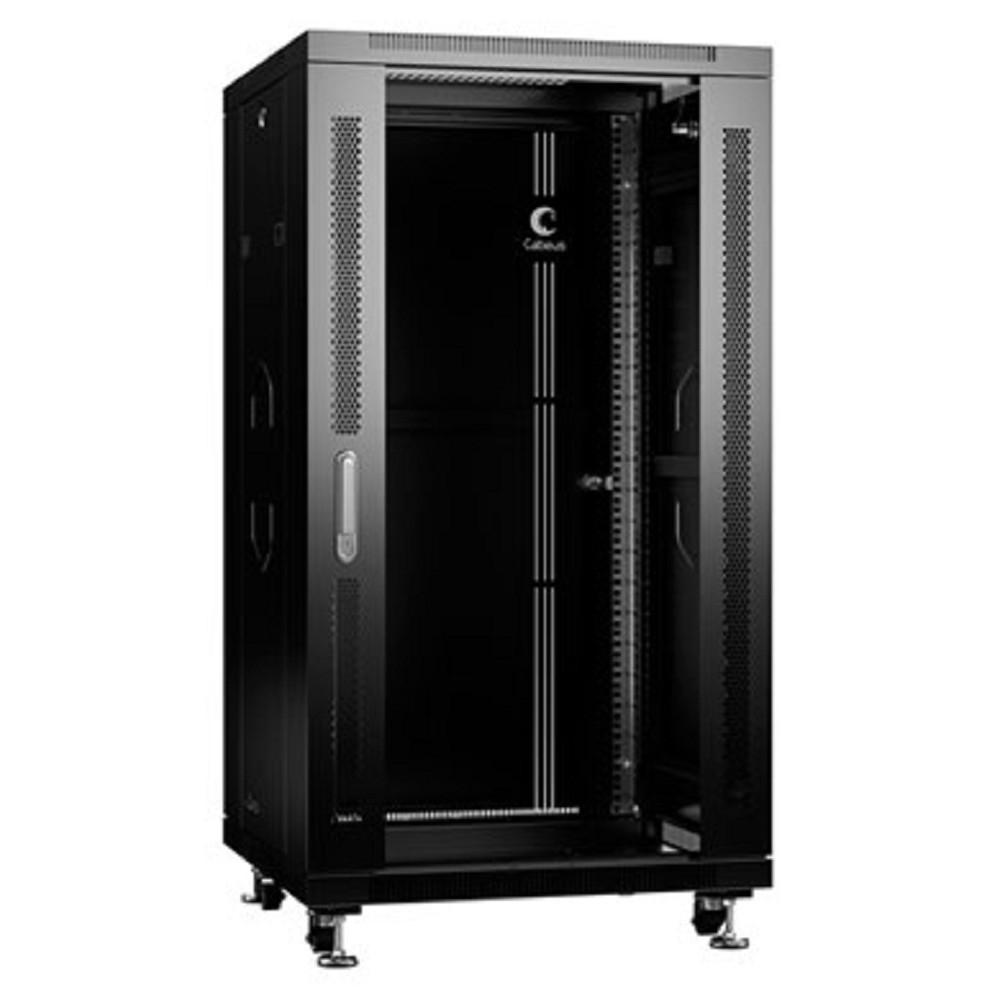 Cabeus SH-05C-22U60 / 80-BK Шкаф телекоммуникационный 19" напольный 22U 600x800x1166mm (ШхГхВ) передняя стеклянная и задняя сплошная металлическая двери, ручка с замком, цвет черный (RAL 9004)