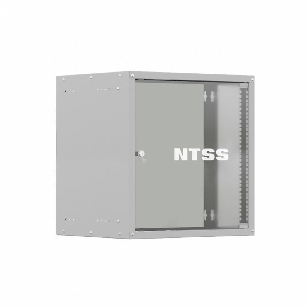 NTSS Шкаф настенный телекоммуникационный NTSS LIME 9U 550х600х500мм, 2 профиля 19, дверь стеклянная, боковые стенки несъемные, разобранный, серый RAL 7035 NTSS-WL9U5560GS