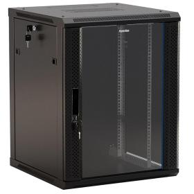 Cabeus SH-05F-15U60 / 60-R-BK Шкаф телекоммуникационный настенный разобранный 19" 15U 600x600x769mm (ШхГхВ) дверь стекло, цвет черный (RAL 9004)