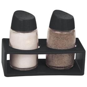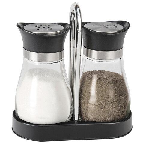 Набор для специй 2х60 мл, BASIC, подставка + солонка + перечница, стекло / пластик, черный, WEGLA (ВЕГЛА), 700232
