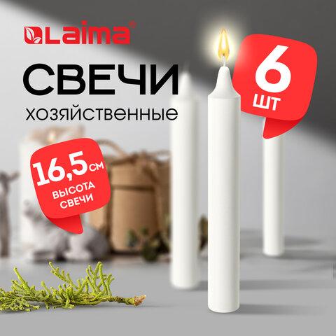 Свечи хозяйственные Standard, до 5 часов, КОМПЛЕКТ 6 шт., H=165 мм, D=16 мм, в пленке, LAIMA, 609205