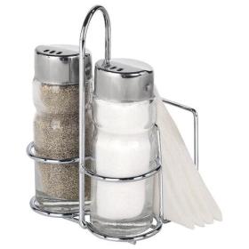 Набор для специй 2х50 мл, CLASSIC, салфетница + соль + перец + стакан под зубочистки, WEGLA (ВЕГЛА), 700236