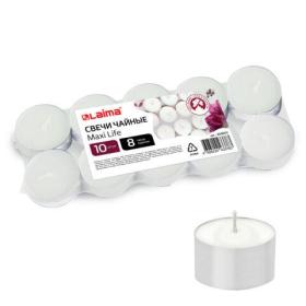 Свечи чайные Maxi Life, до 8 часов горения, вес 21 г, КОМПЛЕКТ 10шт., в гильзе, LAIMA, 609201
