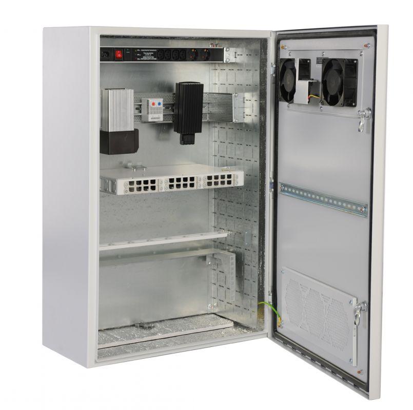 Шкаф коммутационный ЦМО (ШТВ-Н-12.6.5-4ААА-Т1) настенный 12U 600x530мм пер.дв.металл несъемн.бок.пан. 150кг серый 120град. уличный всепогодный с вентилятором с нагревателем укомплектованный
