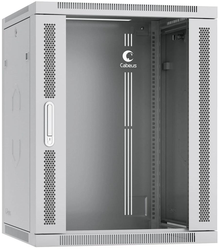Шкаф коммутационный Cabeus (SH-05F-12U60 / 45-R) настенный 12U 600x450мм пер.дв.стекл 50кг серый 390мм 25кг 220град. 635мм IP20 сталь