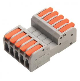 Клемма винтовая универсальная компактная STEKKER LD221-615, 5-проводная 0,5-6 мм2, 450В, 41А, без пасты, материал изделия пластик, медь. Тип провода одножильный / многожильный, материал провода медь, температура окружающей среды -20...+40°C
