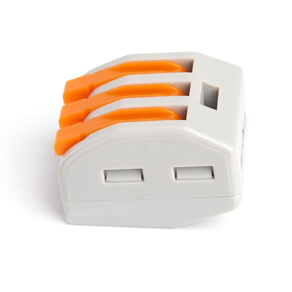 Клемма винтовая универсальная компактная STEKKER LD221-613, 3-проводная 0,5-6 мм2, 450В, 41А, без пасты, материал изделия пластик, медь. Тип провода одножильный / многожильный, материал провода медь, температура окружающей среды -20...+40°C