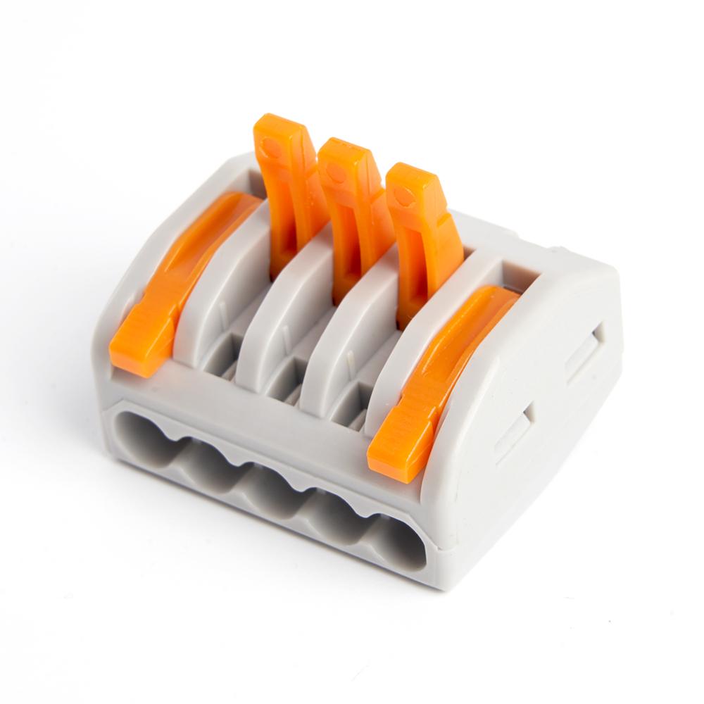 Клемма винтовая универсальная компактная STEKKER LD221-615, 5-проводная 0,5-6 мм2, 450В, 41А, без пасты, материал изделия пластик, медь. Тип провода одножильный / многожильный, материал провода медь, температура окружающей среды -20...+40°C