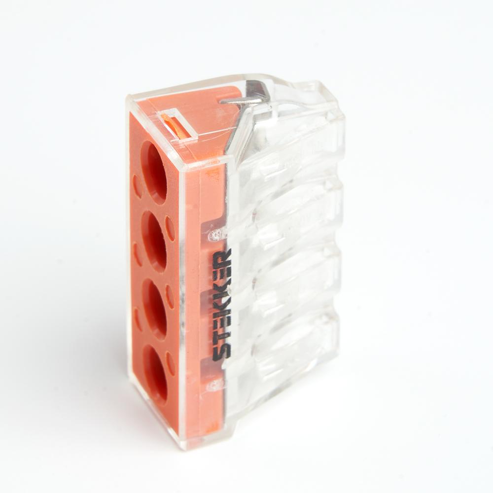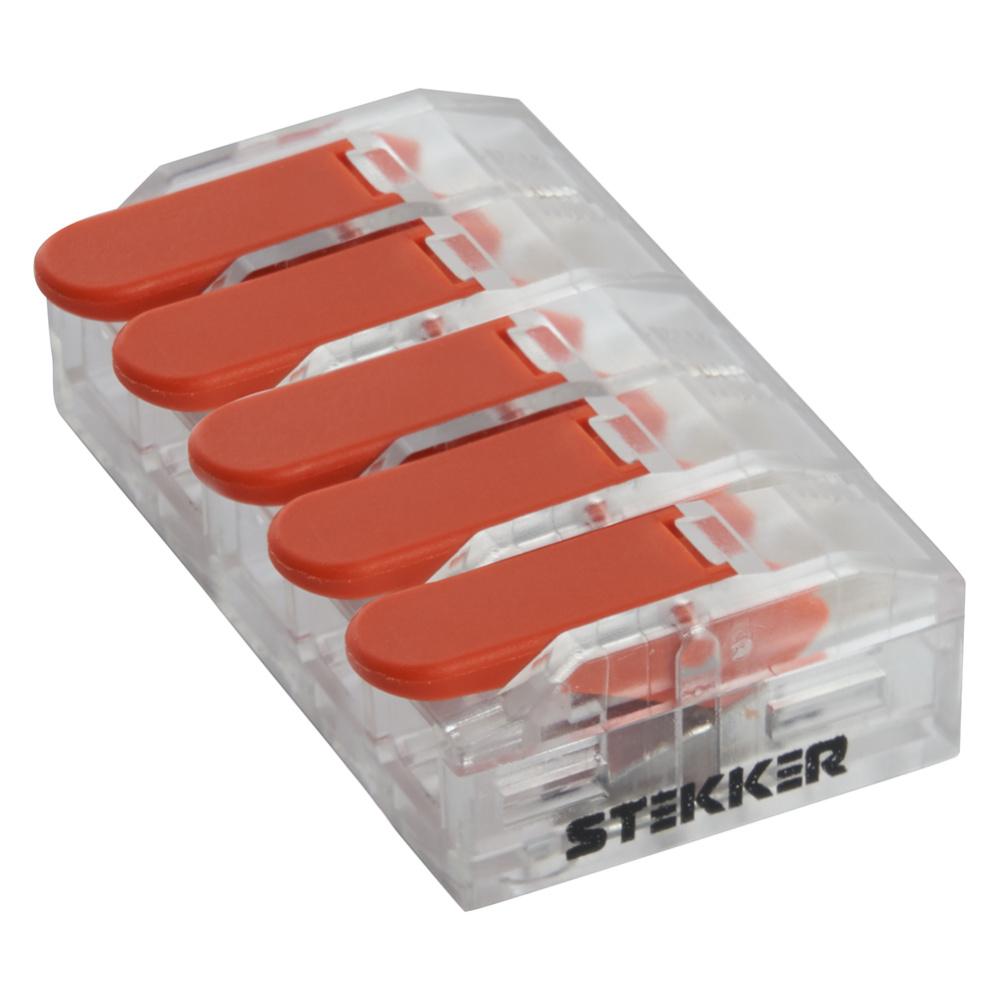 Клемма винтовая компактная STEKKER LD220-104, 5-проводная 0,2-4мм2, 450В, 32А, без пасты, материал изделия полиамид 6.6, латунь. Тип провода одножильный / многожильный, материал провода медь, температура окружающей среды -20...+40°C