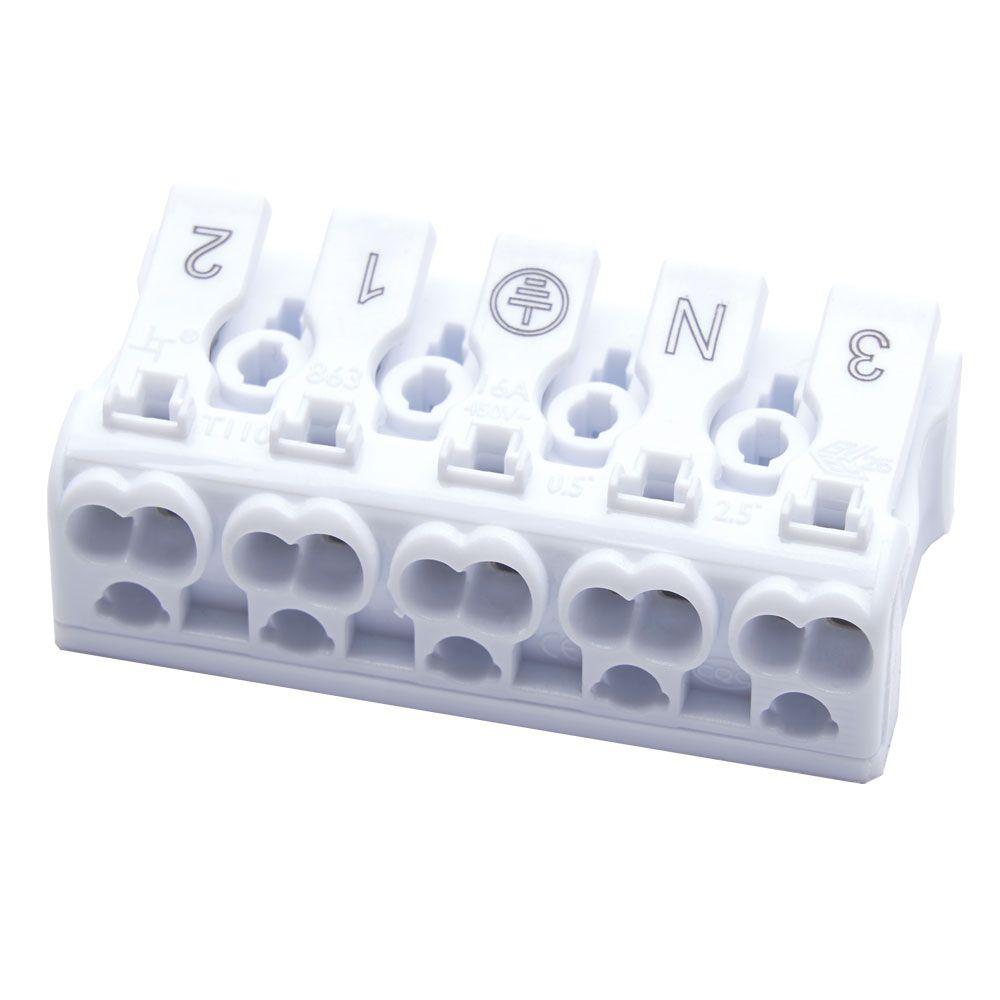Клемма винтовая монтажная STEKKER LD294-5105 , 5-проводная 0,5-2,5 мм2, 450В, 16А, без пасты, материал изделия пластик, латунь, сталь. Тип провода одножильный / многожильный, материал провода латунь / медь, температура окружающей среды -35...+85°C