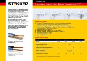 Клемма винтовая монтажная STEKKER LD294-4004, 4-проводная 0,5-2,5 мм2, 450В, 16А, без пасты, материал изделия пластик, латунь, сталь. Тип провода одножильный / многожильный, материал провода латунь / медь, температура окружающей среды -35...+85°C