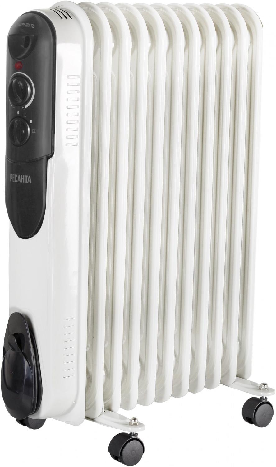 Масляный радиатор Ресанта ОМПТ-12Н с терморегулятором 2500Вт 11 секций 3 режима белый [67 / 3 / 5]