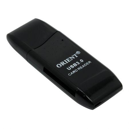 Карт-ридер внешний USB Orient CR-017B для SD / microSD, черный, USB 3.0 (30349)