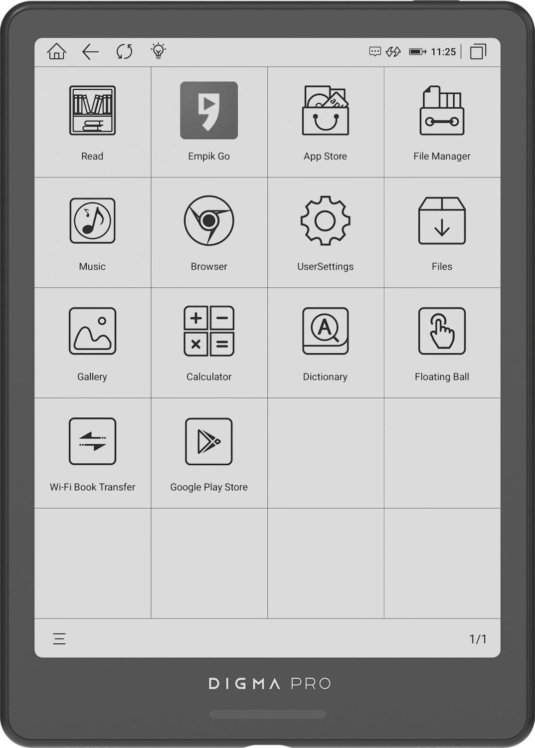 Электронная книга Digma pro MOON 7 7" E-Ink Carta 758x1024 1.8Ghz 1Gb / 32Gb / SD / microSDHC / подсветка дисплея темно-серый