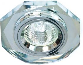 Светильник потолочный встраиваемый (ИВО) FERON DL8020-2 / 8020-2, под лампу MR16 G5.3, прозрачный хром, 8-ми гранник, 90*90*22 мм, монтажный диаметр 60мм, корпус стекло, неповоротный