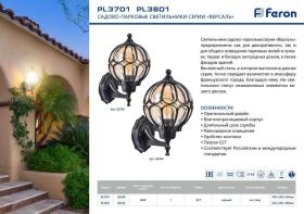 Светильник садово-парковый, серии «Версаль», (НБУ) FERON PL3801 60W, E27, 230V, IP44, цвет черный, шар, на стену вверх, 220*260*380мм