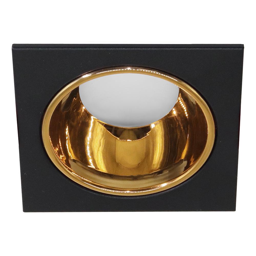 Светильник потолочный встраиваемый (ИВО) FERON DL3112, под лампу MR16 G5.3, черный + золото, квадрат, 92*92*35 мм, монтажный диаметр 80мм, корпус металл, пластик, неповоротный