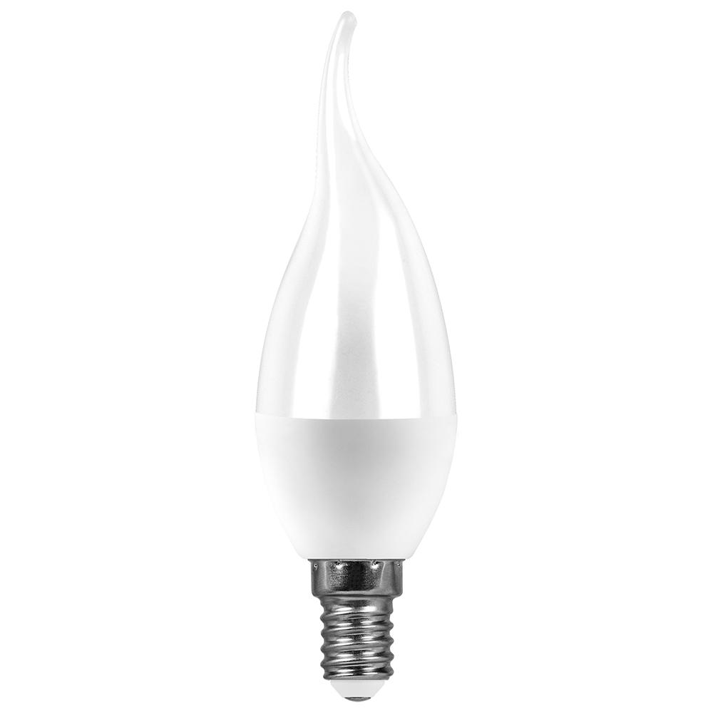 Лампа светодиодная SAFFIT SBC3715, C37T (свеча на ветру), 15W 230V E14 6400К (дневной), рассеиватель матовый белый, 1275Lm, угол рассеивания 220°, 135*37мм