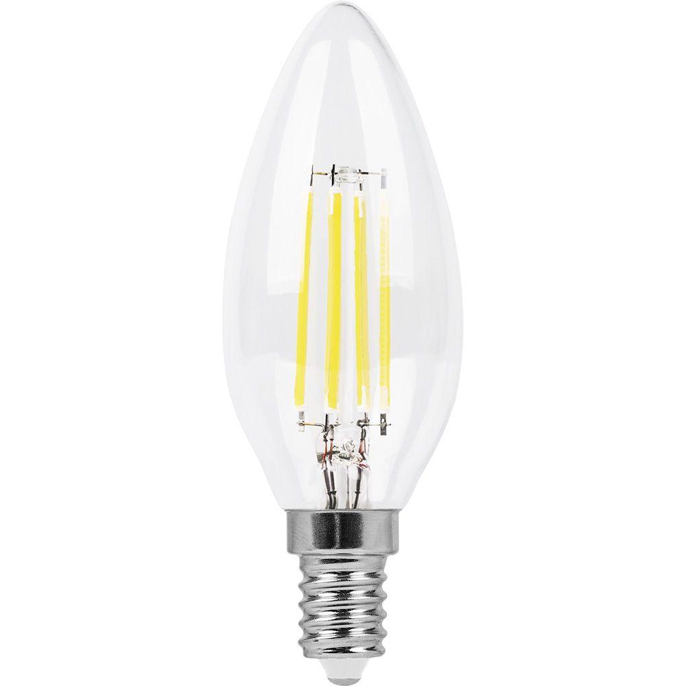 Лампа светодиодная филамент FERON LB-713, C35 (свеча), 11W 230V E14 6400К (дневной), рассеиватель прозрачный 990Lm, угол рассеивания 270°, 100*35мм