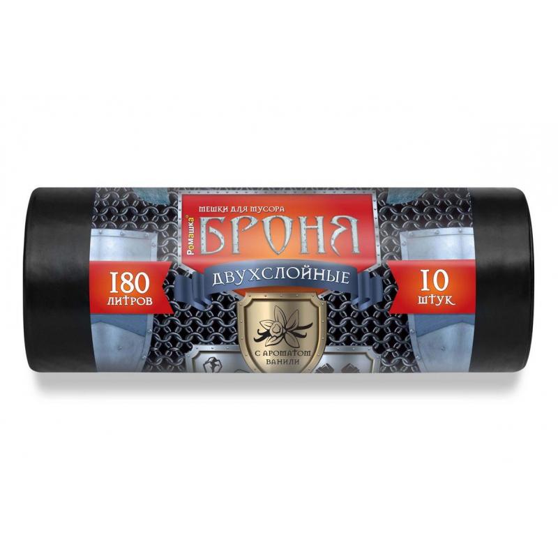 Мешки для мусора в рулоне Броня (180 л; 10 шт; черные; ПВД; 60 мкм; 2-х слойные; 90x110 см) Ромашка ВР-0011Н