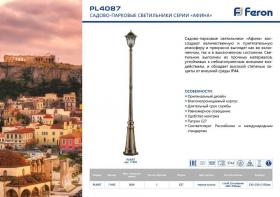 Светильник садово-парковый, серии «Катания», (НТУ) FERON PL757 E14, 230V, IP44, цвет черный, столб, 180*240*2300мм