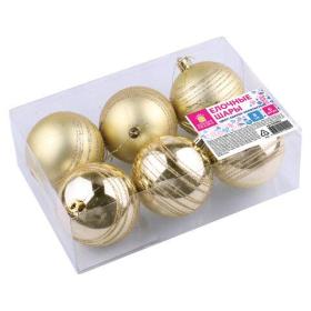 Шары ёлочные 6 шт., 8 см, "Basic Art", пластик, светлое золото (глянец, матовый), ЗОЛОТАЯ СКАЗКА, 590882