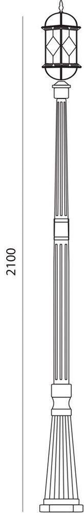 Светильник садово-парковый, серии «Венеция», (НТУ) FERON PL176 60W, E27, 230V, IP44, цвет черное золото, 6-и гранник, столб, 225*225*2100мм