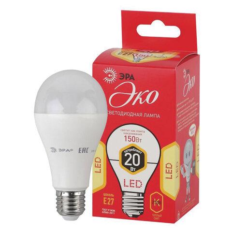 Лампа светодиодная ЭРА RED LINE, 20 (150) Вт, цоколь Е27, груша, теплый белый свет, 25000 ч., LED A65-20W-3000-E27, Б0050687