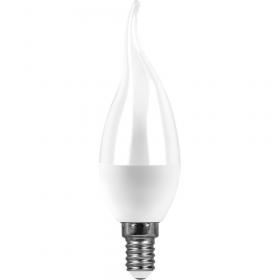 Лампа светодиодная FERON LB-97, C37T (свеча на ветру), 7W 175-265V E14 6400К (дневной), рассеиватель матовый белый, 600Lm, угол рассеивания 220°, 124*37мм