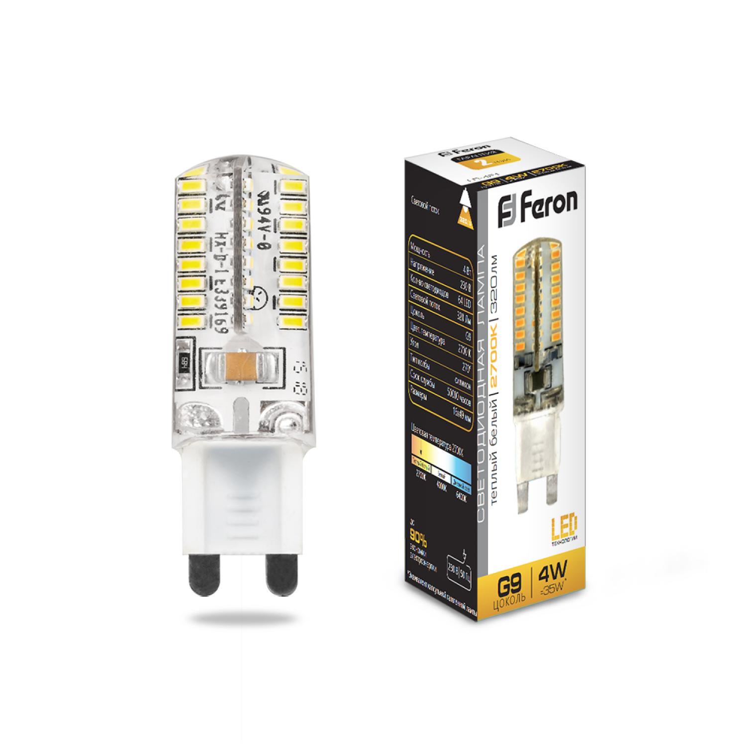 Лампа светодиодная FERON LB-435, JCD9 (капсульная), 11W 175-265V G9 4000К (белый), рассеиватель прозрачный 910Lm, угол рассеивания 270°, 58*22мм
