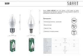 Лампа светодиодная SAFFIT SBC3709, C37 (свеча), 9W 230V E27 4000К (белый), рассеиватель матовый белый, 810Lm, угол рассеивания 220°, 100*37мм