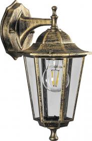 Светильник садово-парковый, серии «Классика», (НБУ) FERON 6202 / PL6202 100W, E27, 230V, IP44, цвет черное золото, 6-и гранник, на стену вниз, 265*200*400мм