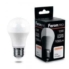 Лампа светодиодная FERON LB-1013, A60 (шар), 22W 175-265V E27 2700К (белый теплый), рассеиватель матовый белый, 1090Lm, угол рассеивания 220°, 125*60мм
