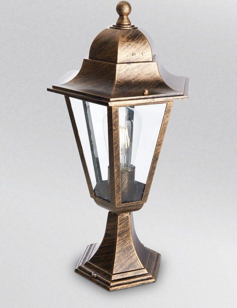 Светильник садово-парковый, серии «Классика», (НТУ) FERON 6204 / PL6204 100W, E27, 230V, IP44, цвет черное золото, 6-и гранник, на постамент, 220*220*455мм