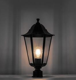 Светильник садово-парковый, серии «Классика», (НТУ) FERON 6203 / PL6203 100W, E27, 230V, IP44, цвет черный, 6-и гранник, на столб, 220*220*380мм