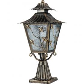 Светильник садово-парковый, серии «Палермо», (НТУ) FERON PL634 60W, E27, 230V, IP44, цвет черное золото, 4-х гранник, на постамент, 224*224*480мм