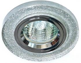 Светильник потолочный встраиваемый (ИВО) FERON DL8060-2 / 8060-2, под лампу MR16 G5.3, серебряный хром, круг, 90*90*23 мм, монтажный диаметр 60мм, корпус стекло, неповоротный