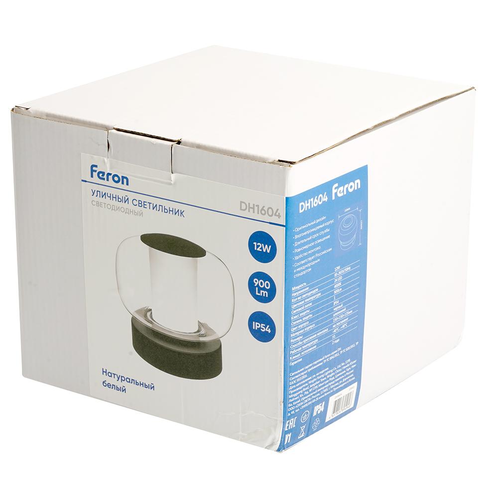 Светильник уличный светодиодный, на постамент (ДБУ) FERON DH1604 , серия Париж, 12W, 4000К (белый натуральный), 85-265V / 50Гц, 900Lm, IP54, 24LED*SMD2835, класс защиты 1, раб.t -40°C...+40°C, цвет черный, корпус алюминий, 150*150*135мм,